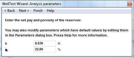 WellTest Wizard: Analysis Parameters