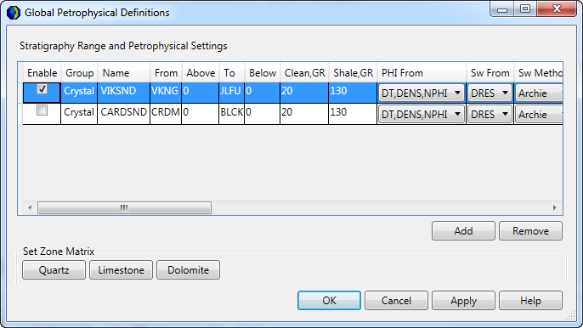 The Global Petrophysical Definitions dialog box appears.![]()
