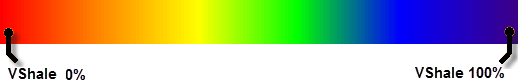 AccuLogs creates palletized color fill between the VShale curve and the right border of the petrophysical subtrack for the active petrophysical zone. A rainbow palette that consists of Red, Orange, Yellow, Green, Blue and finally Purple is used where Red = 0% VShale and Purple = 100% VShale as follows: