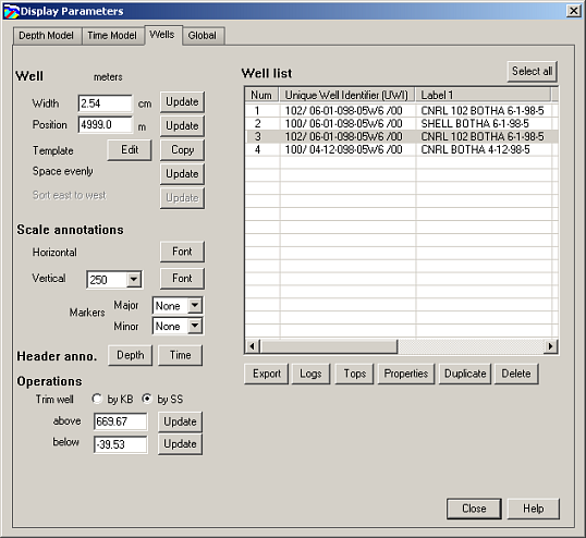 Change general properties that apply to all wells, including scale annotations and model trimming, or specific properties that apply to individual wells, including well labels, KB elevations, depth increments, and more.