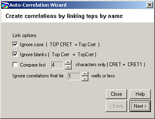 2. In the toolbar beside the Create Well Correlations dialog box, click Auto Cor Wizard.