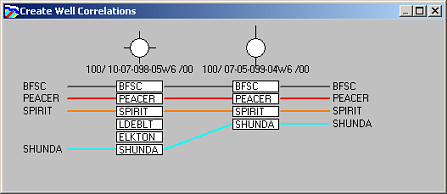 Using the Create Well Correlations or Correlation Wizard dialog boxes enables you to latch correlations more accurately than using your mouse.